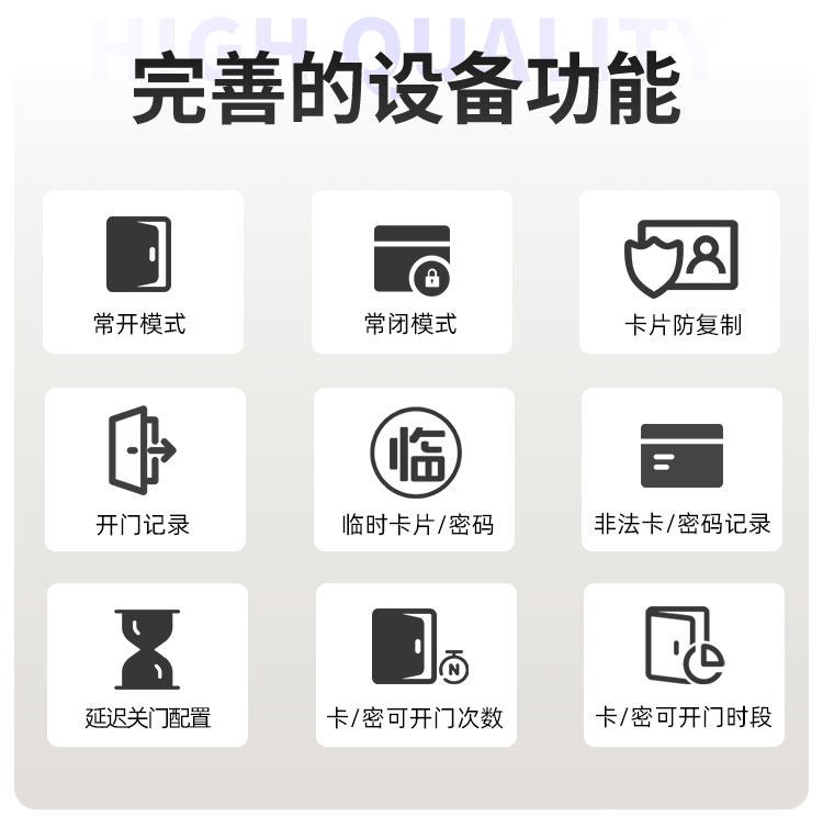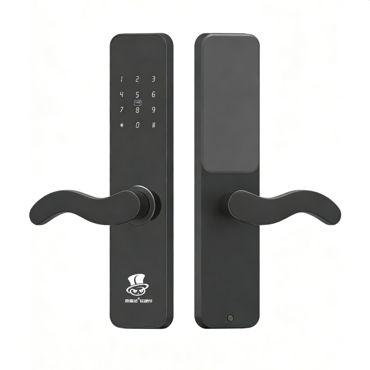 昆明这款智能门锁提供室内门锁和防盗门锁两种选择,其中室内门锁尺寸为 2806521mm,适配 5050 锁体;防盗门锁尺寸为 3657021mm,适配 6068 锁体,可满足不同场景的安装需求。它采用铝合金一体成型搭配钢化玻璃面板打造,兼具坚固耐用的品质与简洁美观的视觉效果。门锁支持蓝牙无线通讯,解锁方式丰富多样,密码、卡片、蓝牙、钥匙四种方式随心选择,满足不同使用习惯与应急需求。其工作温度范围为 - 20~70℃,能适应多数地区的气候条件,采用碱性电池供电,安装更换便捷,是兼具安全性与实用性的门锁选择。